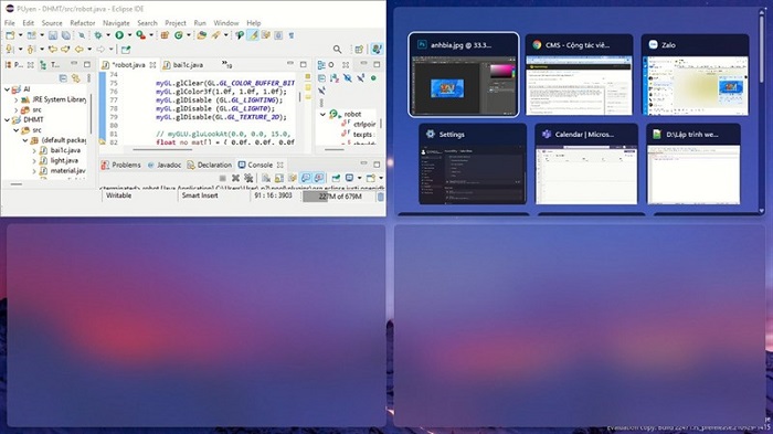 Làm việc với nhiều cửa sổ cùng lúc trên máy tính là nhu cầu rất phổ biến, đặc biệt với dân văn phòng, sinh viên hay những ai hay phải so sánh tài liệu, chat Zalo/Teams trong lúc xem file Excel, Word. Windows 10 hỗ trợ tính năng chia màn hình (Snap) rất tốt, giúp bạn sắp xếp các cửa sổ gọn gàng mà không cần phần mềm thứ ba. Tính năng này có từ Windows 7 nhưng đến Windows 10 thì được cải tiến rõ rệt: chia 2 phần, 3 phần, thậm chí 4 phần dễ dàng.