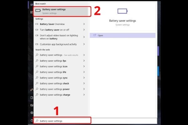 Trên máy tính, bật Battery Saver (tìm kiếm "battery saver") sẽ tự động hạn chế nhiều ứng dụng chạy ngầm để tiết kiệm pin. Vào Settings > System > Power & battery, bật khi cần.