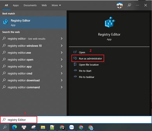 Nhấn Win + R, gõ regedit, Enter (chạy với quyền admin nếu cần).