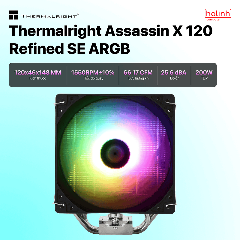 Với 4 ống dẫn nhiệt đồng nguyên chất và công nghệ tiếp xúc trực tiếp, Thermalright Assassin X 120 Refined SE ARGB giúp kiểm soát nhiệt độ CPU cực tốt khi render 3D nặng. Thiết kế tháp đơn gọn gàng không gây cấn RAM, kết hợp cùng quạt PWM tích hợp LED ARGB vừa đảm bảo máy vận hành mát mẻ, êm ái, vừa tăng tính thẩm mỹ chuyên nghiệp cho không gian làm việc của kiến trúc sư.