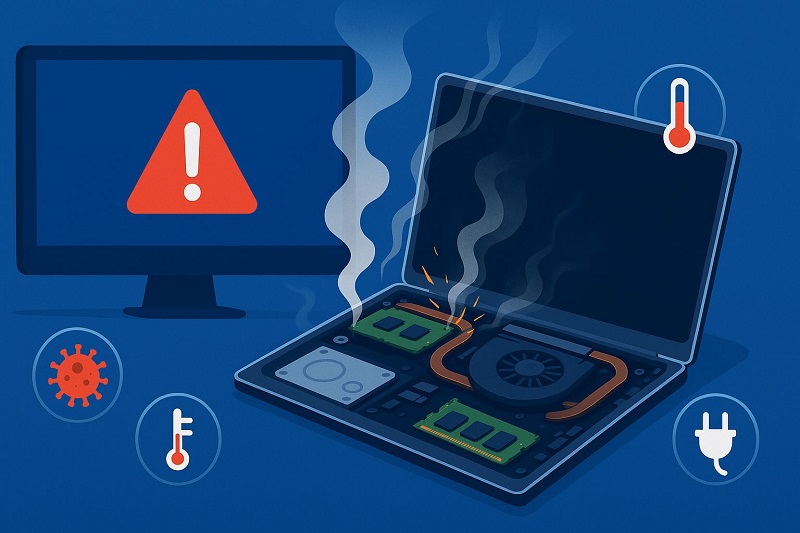 Máy tính (đặc biệt là laptop) nếu không được vệ sinh định kỳ sẽ tích tụ bụi trong khe tản nhiệt, quạt, và các linh kiện bên trong. Lâu dần, bụi gây cản trở luồng khí, keo tản nhiệt cũng khô đi, dẫn đến hiện tượng CPU hoặc GPU bị quá nhiệt. Khi đó, hệ thống tự động giảm hiệu suất hoặc treo máy để bảo vệ linh kiện khỏi bị cháy nổ.