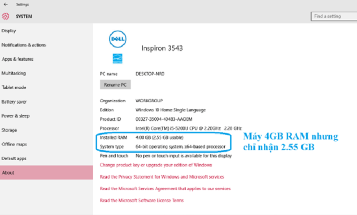 Hệ điều hành Windows 32-bit: Phiên bản này chỉ nhận tối đa khoảng 3.2GB đến 3.5GB RAM, dù bạn lắp 8GB hay 16GB thì cũng vô dụng.