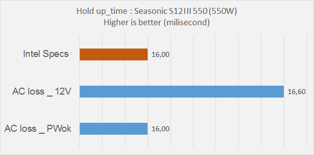 Cả 3 phiên bản S12 III đều có mức hold up time vừa khít tiêu chuẩn atx yêu cầu. Phiên bản 500 và 650 có thấp hơn đôi chút ~1mS