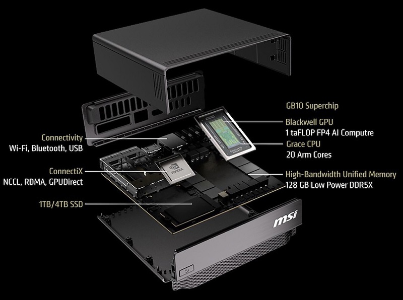 MSI EdgeXpert MS-C931 được trang bị NVIDIA GB10 Grace Blackwell Superchip – siêu chip kết hợp CPU NVIDIA Grace 20 nhân (dựa trên ARM v9.2) và GPU NVIDIA Blackwell với Tensor Core thế hệ 5, hỗ trợ FP4 precision. Theo NVIDIA Newsroom:
